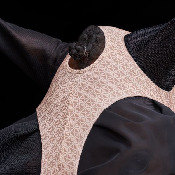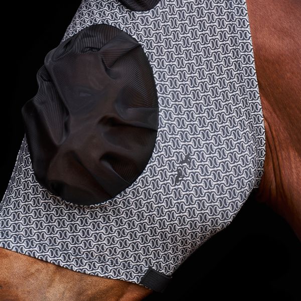 Není to jen tak ledajaká maska proti hmyzu; je navržena s ohledem na pohodlí a výkon vašeho koně. Díky fantastické čtyřsměrné strečové tkanině a bezpečnému zapínání na zip nabízí přiléhavé a kompresní nošení kolem hlavy bez jakýchkoli potíží. Strategicky umístěné síťované panely kolem očí a uší poskytují vynikající ventilaci a klíčovou ochranu před otravným hmyzem a dráždivým pylem, což zajišťuje, že váš kůň zůstane soustředěný a šťastný během školení, vyjížďek na stezce nebo vyjížďek. Jezděte s jistotou s vědomím, že váš kůň vypadá stylově a cítí se skvěle!
