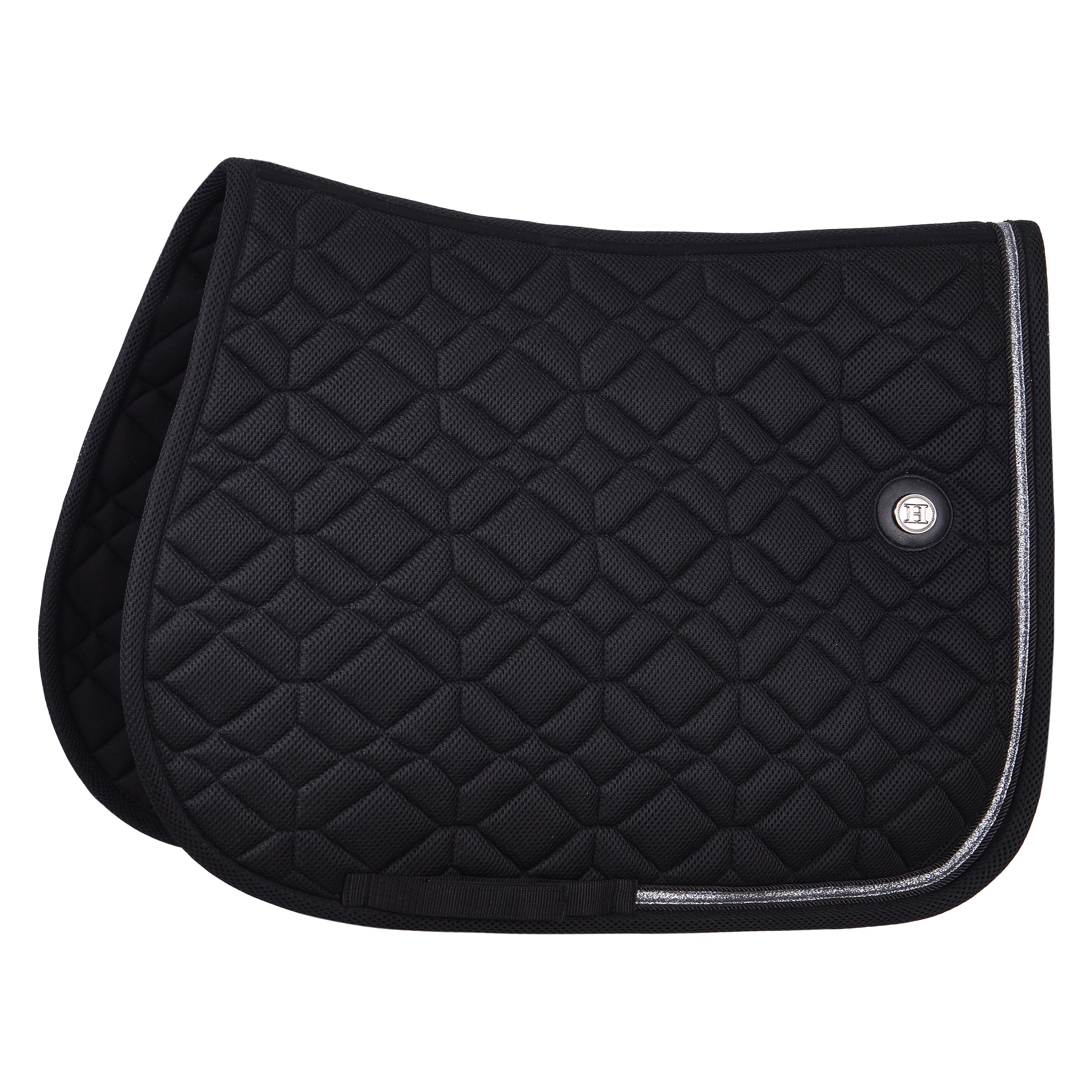 Zvyšte pohodlí svého koně a styl vašeho sedla s podsedlovou podložkou HV POLO Mesh Saddlepad HVPKaty GP! Tato podsedlová podložka, navržená pro náročné jezdce, je skutečnou převratnou volbou, pokud jde o výkon a sofistikovanost. Představte si, že si váš kůň užívá bezkonkurenční pohodlí během každého tréninku díky inovativní 3D síťované konstrukci, která odborně rozkládá hmotnost a maximalizuje proudění vzduchu. Unikátní perforované jádro z pěny dále zvyšuje prodyšnost a zajišťuje lehký pocit, který udrží vašeho koně v chladu a soustředěného. Design s těsným kontaktem navíc nabízí intimní spojení, zatímco luxusní měkká bambusová podšívka poskytuje antimikrobiální a vlhkost odvádějící vlastnosti, čímž zajišťuje maximální pohodu vašeho koně. Nejde jen o výkon; elegantní třpytivé lemování a knoflík s logem značky dodávají vašemu jezdeckému outfitu charakteristický nádech elegance HV POLO.
