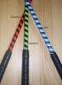 Dostihový bič potažený dvou barevnou PVC spirálou. "Golfové" držadlo a uzavřená plácačka.