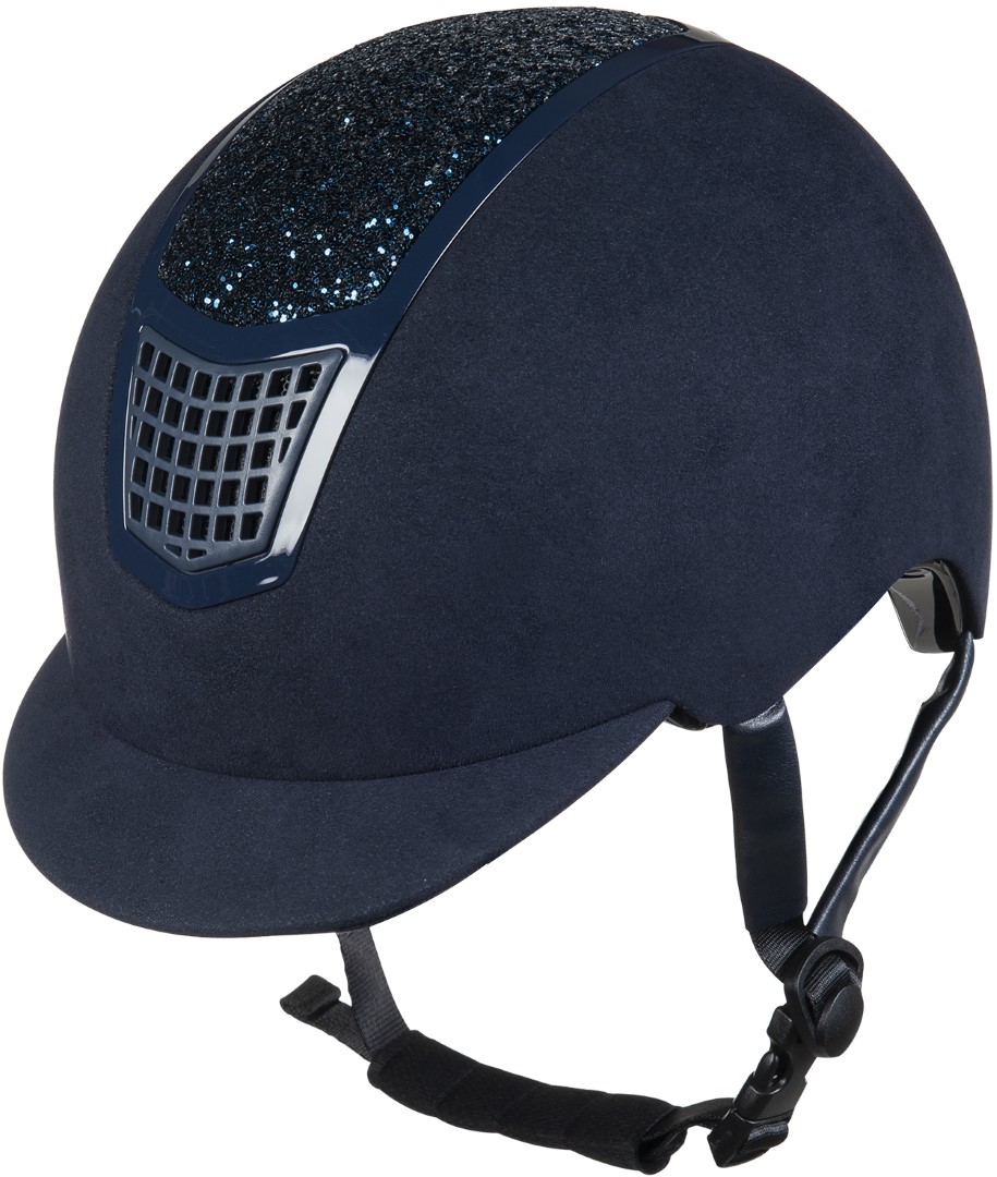 Bezpečnostní jezdecká přilba v elegantním vzhledu. Elegantní vzhled tvoří glitrový pruh v horní části. Vybavena je odnímatelnou prodyšnou podšívkou a měkkou ochranou brady. Je měkkce postrovaná s integrovaným odvětráváním. Možnost úpravy velikosti pomocí otočného kolečka. K dispozici více velikostí a barev. Dodávána v látkovém sáčku (100% polyester). Splňuje standard VG1 01.040 2014-12.