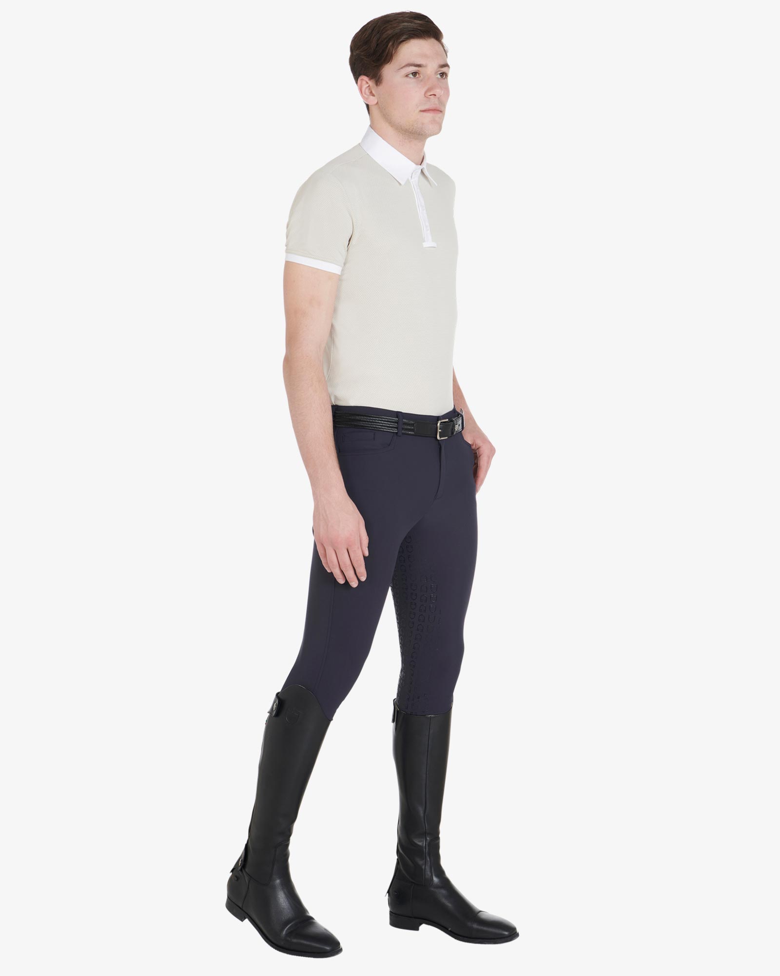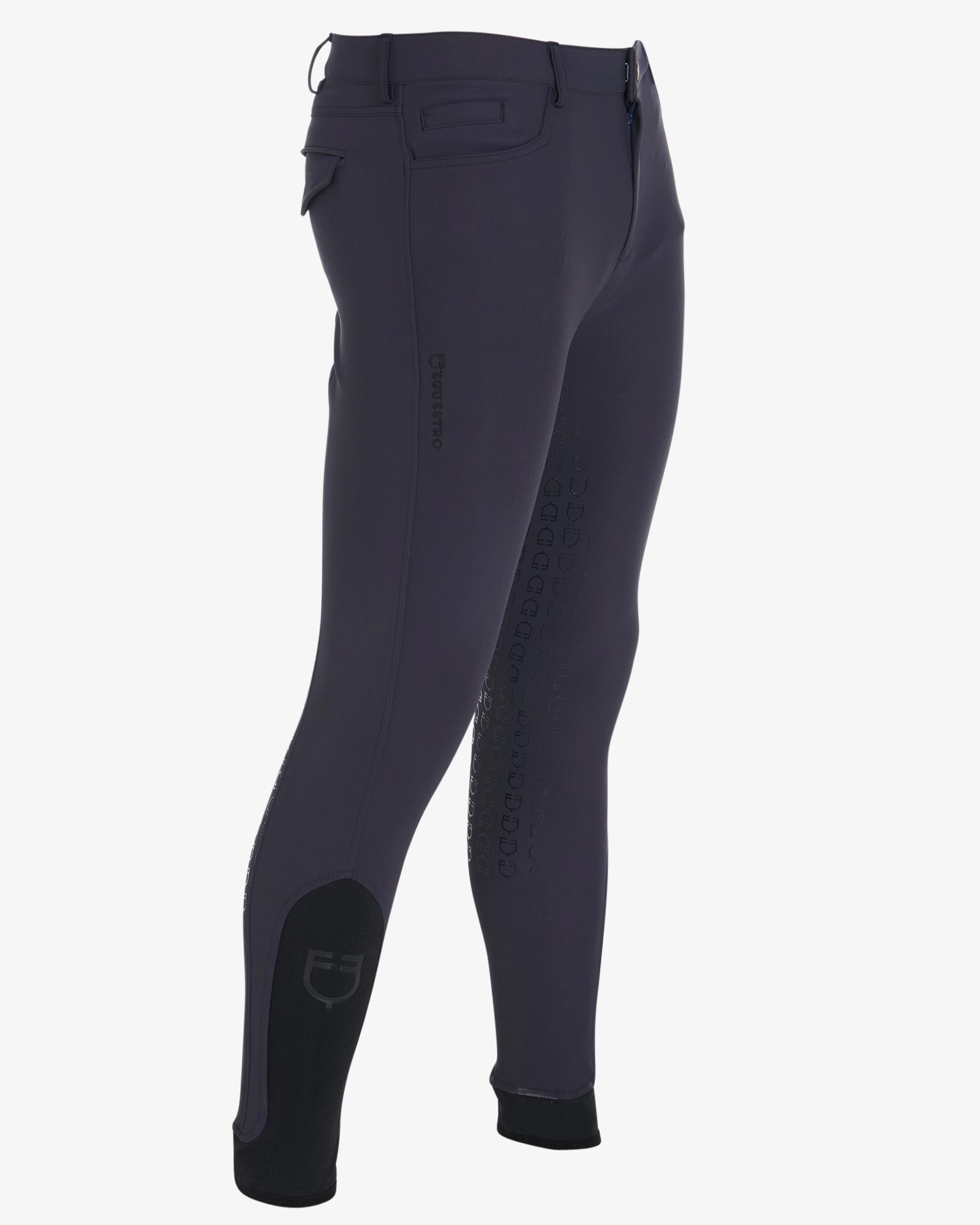 Pánské rajtky Equestro z bielastické a prodyšné technické tkaniny s pohodlnými a praktickými předními kapsami. Vyznačuje se praktickým silikonovým sedem, který zaručuje vynikající stabilitu a přilnavost k sedlu. Umožňují maximální volnost pohybu a vysoký pocit bezpečí při jízdě. Pro zlepšení praktičnosti a prodyšnosti jsou rajtky opatřeny elastanovou vsadkou na spodní straně kotníku.