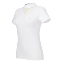 Dámské závodní tričko vyrobeno z elastické, prodyšné technické tkaniny odvádějící vlhkost. Zapínání na knoflíčky. Žebrování na výstřihu a rukávech.