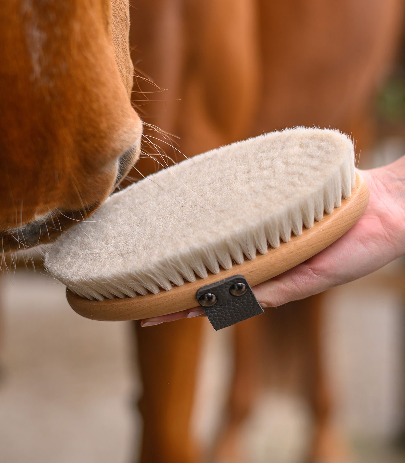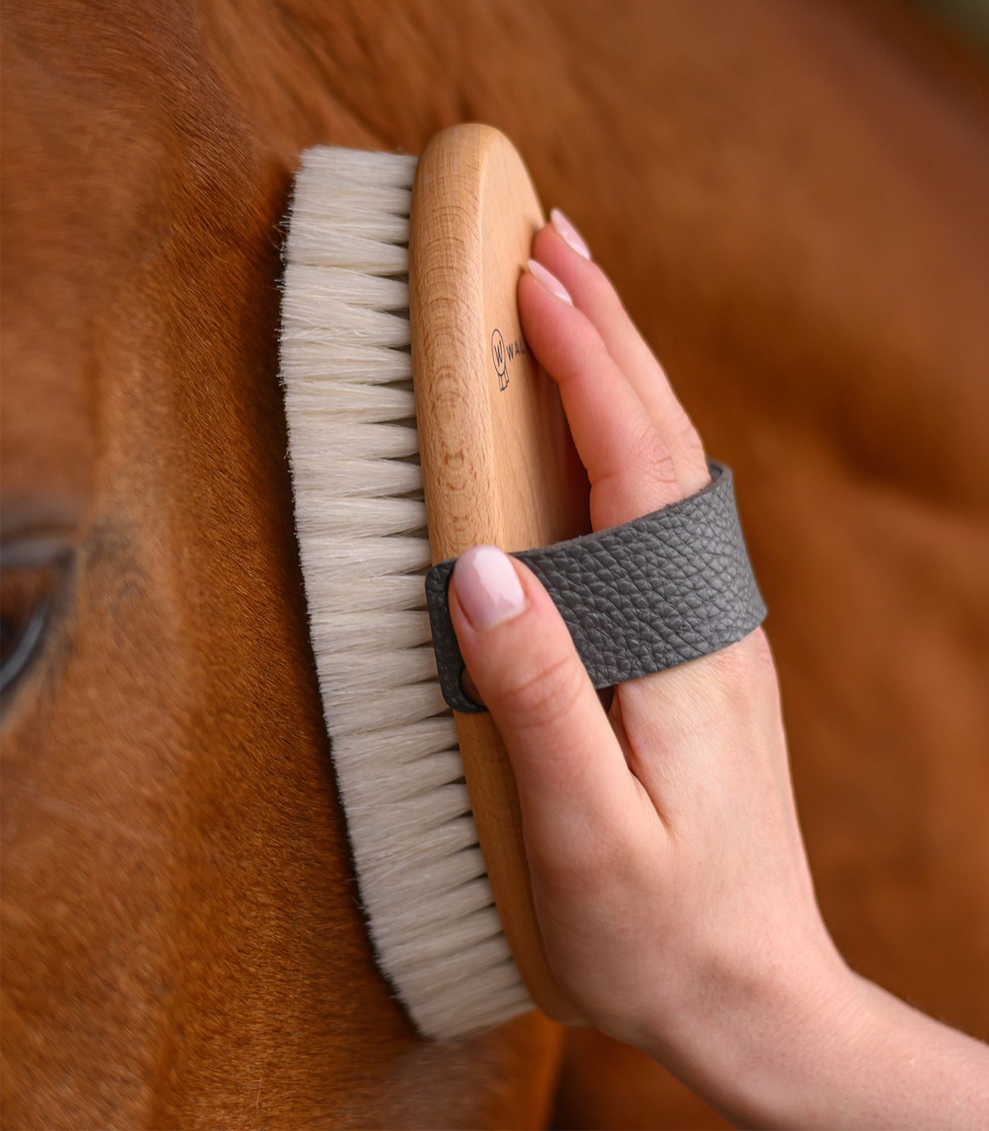 Tento vysoce kvalitní jemný kartáč ze zvířecích chlupů dodává srsti lesk a je ideální pro konečnou úpravu. Měkké a hladké štětiny nezanechávají na srsti koně prach a zároveň poskytují extra péči. Přírodní materiály zabraňují elektrostatickému nabíjení. Řada Exclusive jsou kartáče vyráběné z vysoce kvalitních a přírodních materiálů (koňské žíně, kozí žíně, kokosová vlákna a bukové dřevo).