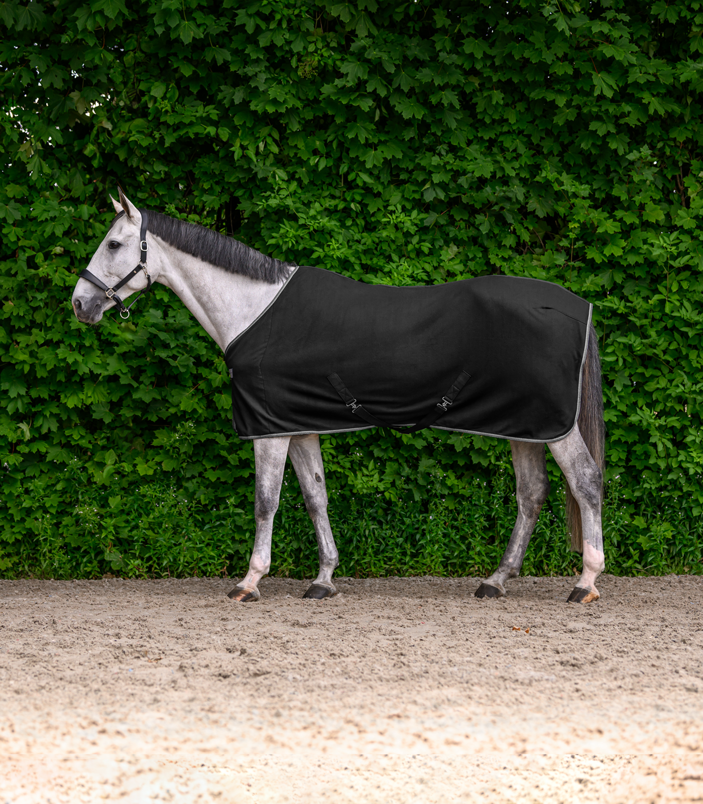 Klasická fleecová odpocovací deka pro rychlé a snadné uschnutí. Deka má praktické přední zapínání do tvaru T, podocasní šňůrku na konci a atraktivní lemování. Je k dispozici v mnoha velikostech a barvách, takže si najdete perfektní volbu pro všechny koně.