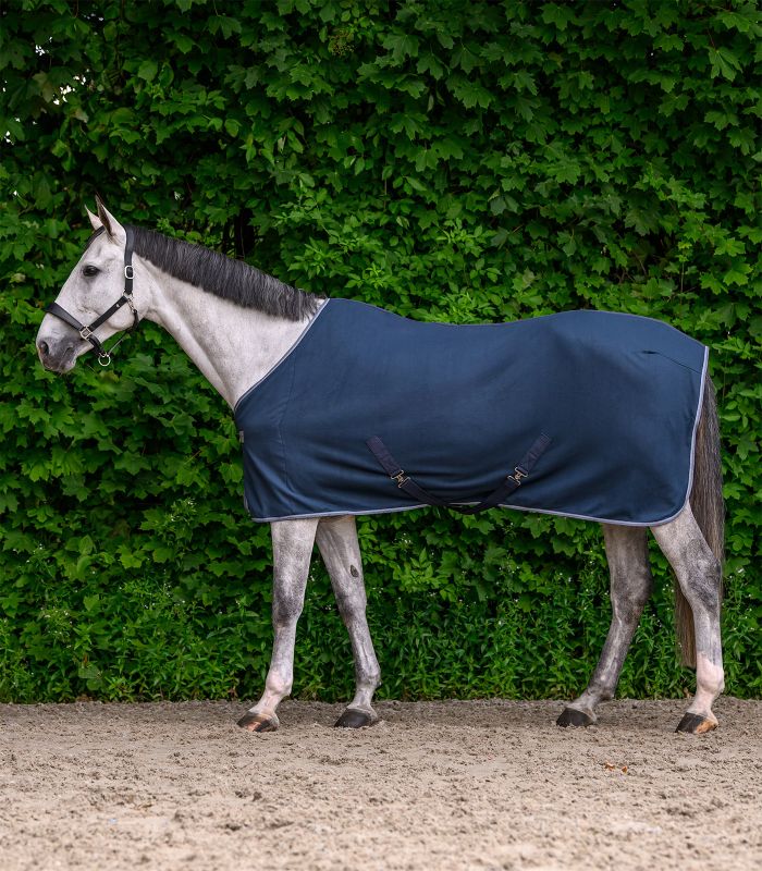 Klasická fleecová odpocovací deka pro rychlé a snadné uschnutí. Deka má praktické přední zapínání do tvaru T, podocasní šňůrku na konci a atraktivní lemování. Je k dispozici v mnoha velikostech a barvách, takže si najdete perfektní volbu pro všechny koně.