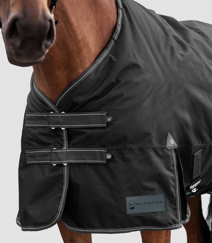 S dekou Waldhausen Arctic si můžete být jisti, že je váš kůň optimálně chráněn i za nepříznivých podmínek. Antibakteriální vnitřní podšívka zajišťuje maximální pohodlí. Dvojité zapínání ve tvaru T vpředu zajišťuje bezpečné uchycení a zabraňuje klouzání. Lemování s reflexními detaily zvyšuje viditelnost za zhoršených světelných podmínek. Široký rozparek umožňuje neomezenou volnost pohybu, zatímco křížové zapínání poskytují extra stabilitu. Vnější tkanina s gramáží 600 denier poskytuje odolnou bariéru proti větru a počasí.