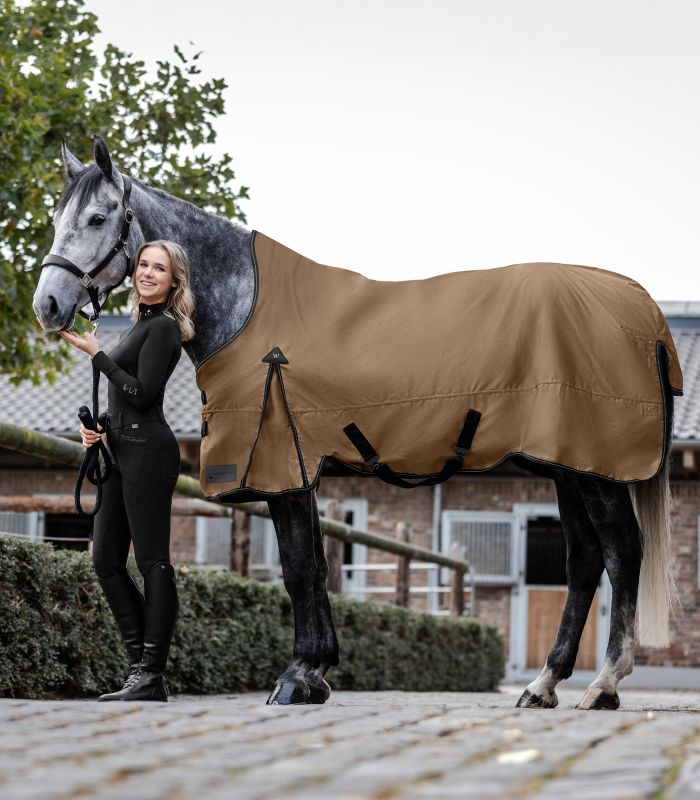 S dekou Waldhausen Arctic si můžete být jisti, že je váš kůň optimálně chráněn i za nepříznivých podmínek. Antibakteriální vnitřní podšívka zajišťuje maximální pohodlí. Dvojité zapínání ve tvaru T vpředu zajišťuje bezpečné uchycení a zabraňuje klouzání. Lemování s reflexními detaily zvyšuje viditelnost za zhoršených světelných podmínek. Široký rozparek umožňuje neomezenou volnost pohybu, zatímco křížové zapínání poskytují extra stabilitu. Vnější materiál 600 denier poskytuje odolnou bariéru proti větru a počasí. Venkovní deka Arctic High Neck se vyznačuje vyšším límcem, který zabraňuje odírání v kohoutku a hřívě.