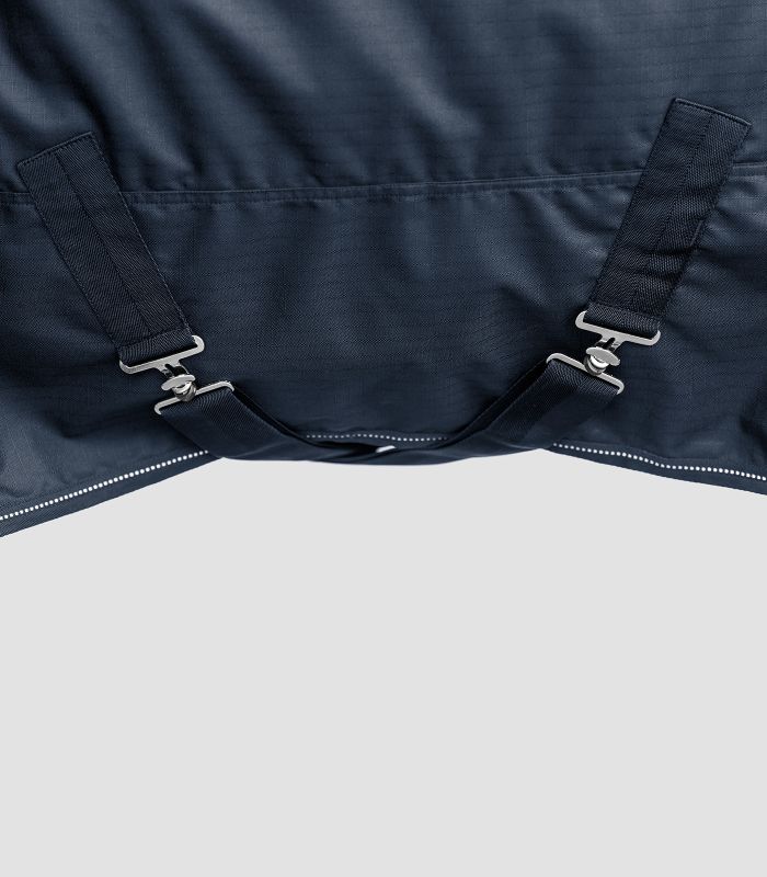 S dekou Waldhausen Nordic si můžete být jisti, že je váš kůň optimálně chráněn i za nepříznivých podmínek. Antibakteriální vnitřní podšívka zajišťuje maximální pohodlí. Dvojité zapínání ve tvaru T vpředu zajišťuje bezpečné uchycení a zabraňuje klouzání. Lemování s reflexními detaily zvyšuje viditelnost za zhoršených světelných podmínek. Široký rozparek umožňuje neomezenou volnost pohybu, zatímco křížové zapínání poskytují extra stabilitu. Vnější tkanina s gramáží 600 denier poskytuje odolnou bariéru proti větru a počasí.