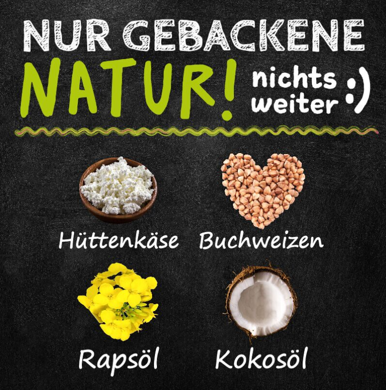 Složení: 30 % mléčných výrobků bez laktózy (s peptidy), pohanka (není to obilovina), rostlinný glycerin, řepkový olej, kokosový olej