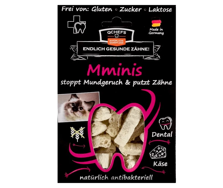Produkty QCHEFS se rozpouštějí v tlamě pomocí slin, rozšiřují se rovnoměrně po celé ústní dutině a dostávají se i do nejzazších míst či mezizubních prostor. Aktivně působí proti zápachu z tlamy, protizánětlivě a pomáhají rozpouštět zubní kámen. Produkty Q-Chefs pomáhají udržet zdravou a vyváženou ústní mikroflóru.