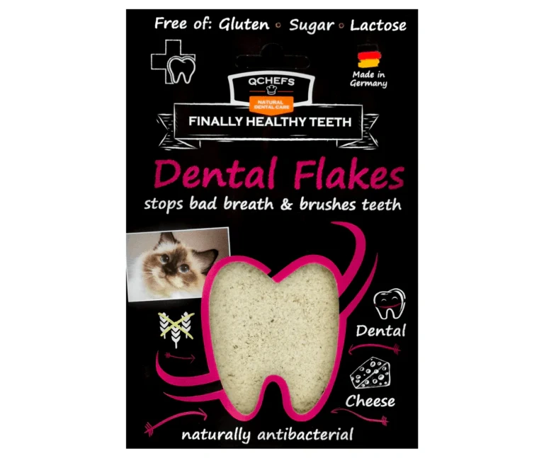 Nejúčinnější a nejintenzívnější dentální péče QCHEFS! Vločky jsou z mnoha o jemných částic a při olizování se rozprostřou po celé ústní dutině. Kočka je hned nespolkne. To poskytuje optimální podporu péče o zuby. Antibakteriální peptidy při olizování nejprve působí na jazyk, kde se nachází většina bakterií, jejich počet se redukuje a ústní flóra je vyvážená.