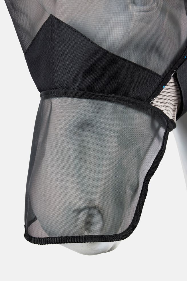 Udržujte svého koně v chladu a chraňte ho před letním hmyzem! Tato chladivá maska proti mouchám udrží vašeho koně v létě v pohodlí a ochrání před hmyzem. Prodyšný síťovaný materiál na uších, vpředu a na bocích zajišťuje ventilaci, zatímco fleece kolem uší je měkký a pohodlný. Zapínání na suchý zip se bezpečně zapíná. Pásky s logem na bocích dodávají této masce sportovní vzhled. Zkombinujte s limitovanou edicí chladicího deky pro plnou ochranu.