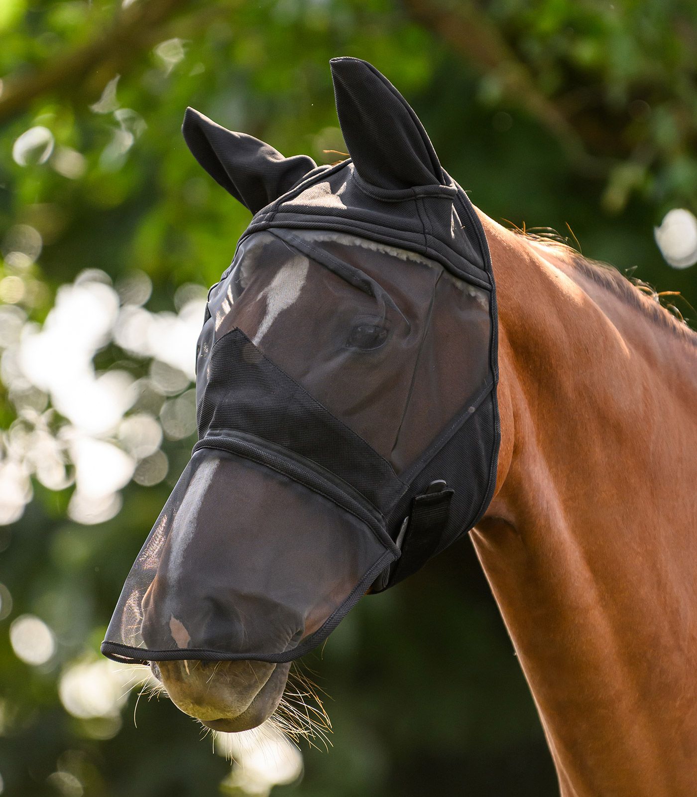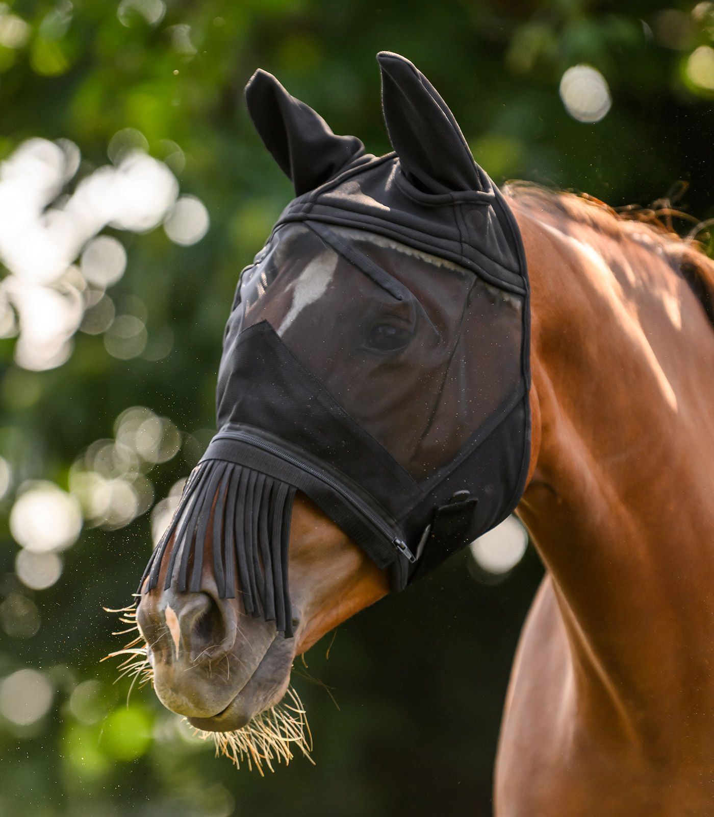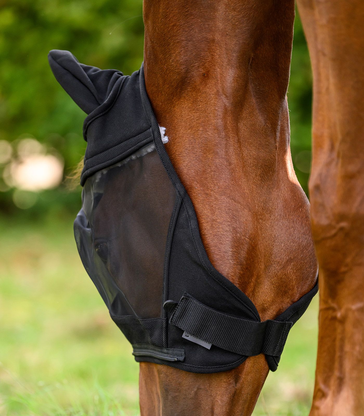 Ideální ochrana 3 v 1 proti otravnému hmyzu. Zapínání na zip usnadňuje a rychle vyměňuje ochranu nozder. To znamená, že masku lze nosit bez ochrany nozder, s ochranou nozder nebo s třásněmi. S otvorem na kštici.