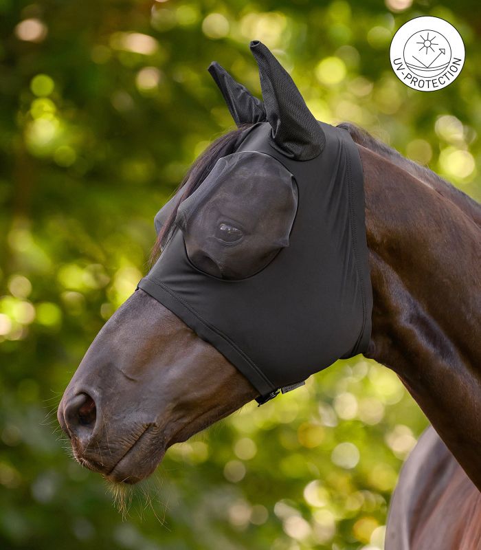 Ideální ochrana proti otravným mouchám a jinému hmyzu. Dlouhý zip usnadňuje nasazení a sundání. Díky elastickému materiálu maska těsně přiléhá a nedává hmyzu žádnou šanci. Síťovina v oblasti očí poskytuje dostatek prostoru a neomezuje výhled koně.