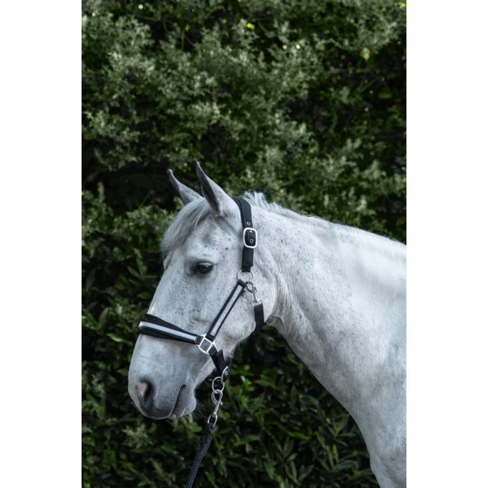 • Reflexní ohlávka se vyznačuje robustními stříbrnými prvky a praktickou karabinou pro snadné otevírání. Pro optimální pohodlí jsou nánosník a nátylník polstrované měkkým neoprenem. . Reflexní detaily poskytují větší bezpečnost ve tmě nebo za nepříznivého počasí.