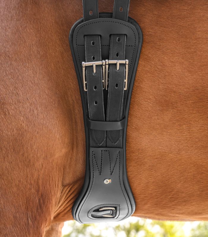 Měkký polstrovaný a anatomicky tvarovaný podbřišník, který chrání koně před otlačením a optimálně se přizpůsobuje. Vyroben z kvalitní kůže a vybaven nerezovými válečkovými přezkami a elastickými dotahovacími gumami na obou koncích.