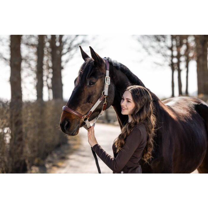 Ohlávka -Luna- kombinace kůže-nylon béžová/hnědá