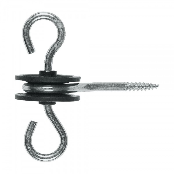 Koncový izolátor pro elektrické ohradníky. Vhodný pro drát, lanka, lana a pásky do 20 mm. Je doplněn dvěma kovovými oblouky - háčky. Na jeden lze připojit koncový vodič ohrady a na druhý se zahákne háček z vchodové branky