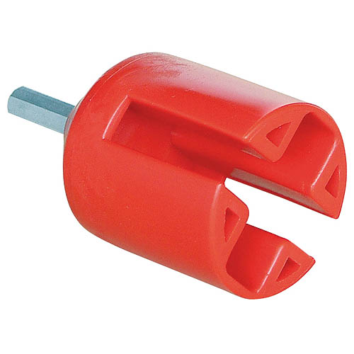 Montážní hlavice slouží ke šroubování kruhových a MAXI TAPE izolátorů do kůlu pomocí aku vrtačky. Vrut izolátoru vždy zašroubujte do podložky až k plastu tak, aby izolátor nebyl namáhán na ohyb.