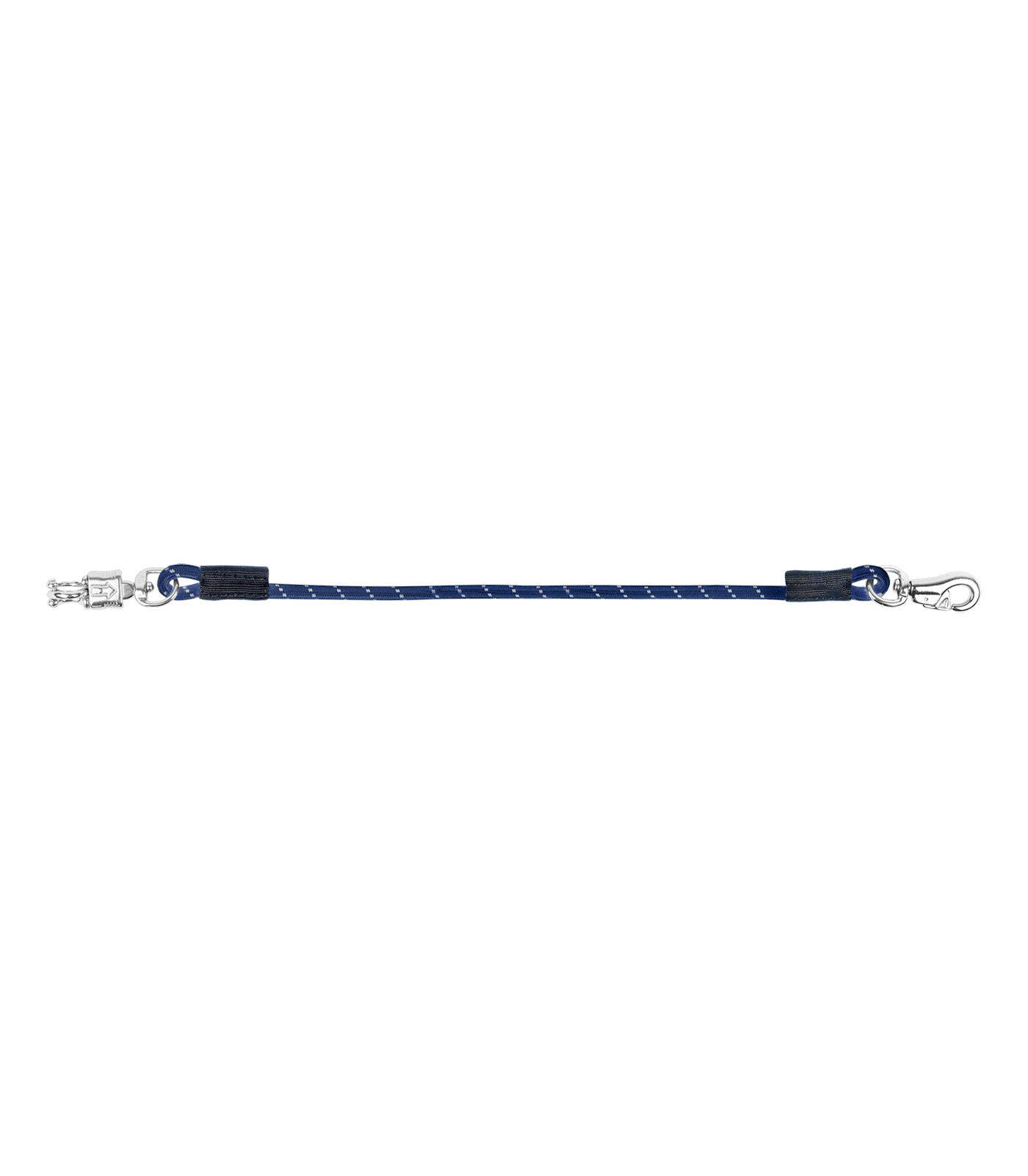 Praktická možnost uvázání koně s panik karabinou na jedné straně a silnou karabinou na druhé straně. Robustní a univerzálně použitelný.